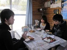 と、民宿ひばりのおばさん手作りの、蒸しパン(中央の茶色の)。