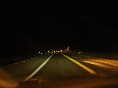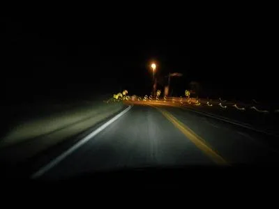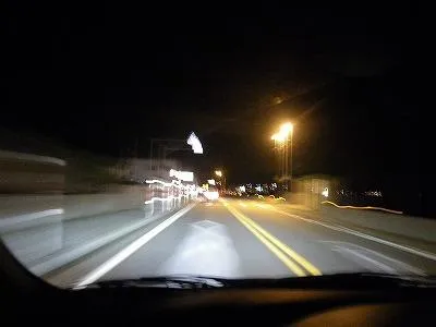 海沿いの道を走るけれど、真っ暗で何も見えない・・・