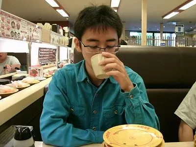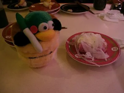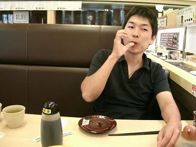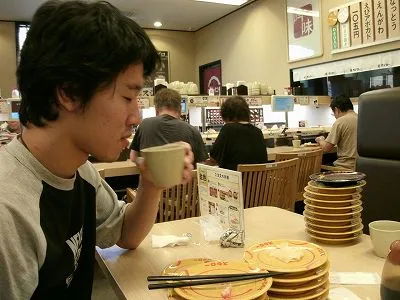 釣りの前に、昼食に寿司を食べました。 道の駅内部の回転ずしです。