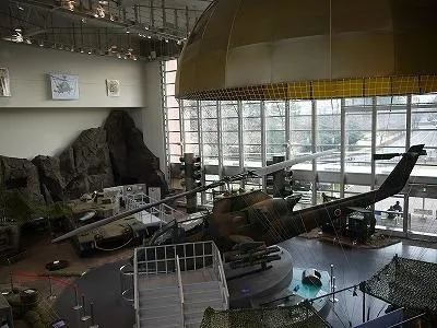 本物のヘリや戦車が置いてある。