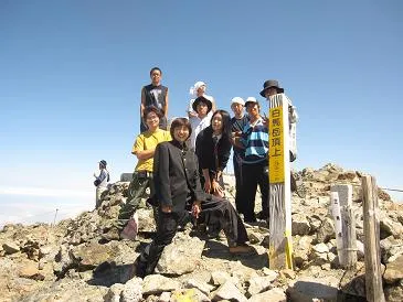 ということで、疲れたみんなに大サービス、iwiが高校時代の制服を召して(もちろん靴は山靴w)頂上に登ってきてくださいました!