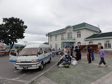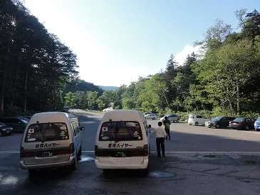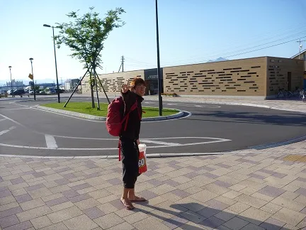 (左)東大雪山荘。いやぁー。いいお湯でした。(右)そしてジャンボタクシーで駅へ。KTさんは帯広で合流すべく早めに自転車で出ました。