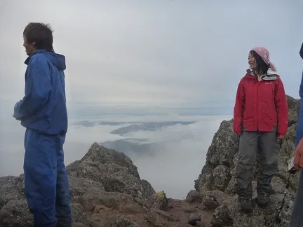 (左)そして山頂に到着!!しかし寒い!!(中)お察しください(右)いやぁ晴れてきた晴れてきた。