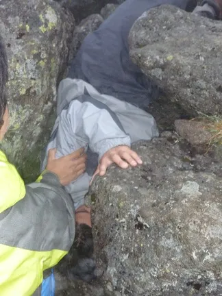 (左)カメラを岩の隙間に落として大変なことになったogqさん(右)記念撮影!!なんかすずえもんがCGくさい・・・