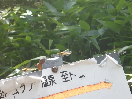 (左)温泉コースを歩きましたがこれがとても長いうえに足場が最悪で不快指数マックスでした。よかったのはトンボくらいですよ。