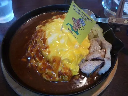 (左)富良野のオムカレー。北海道は美味しかった(しみじみ・・・)(左)富良野で戯れるすずえもん。