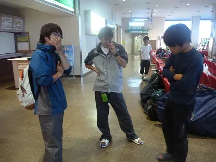 (左)札幌駅で。迷走に迷走を重ねた結果がこれだよ。(右)フェリー乗り場で2Gと合流。米は次の日の便でした。台風きてて欠便しそうになってた。