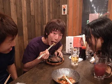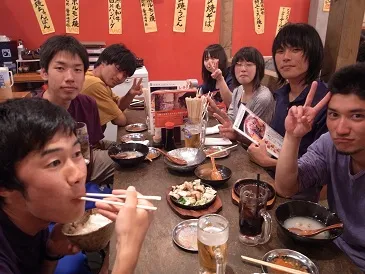 (左)KTさんとも合流。何キロも移動してきたのにこの元気さ。(右)飲み会開始!!