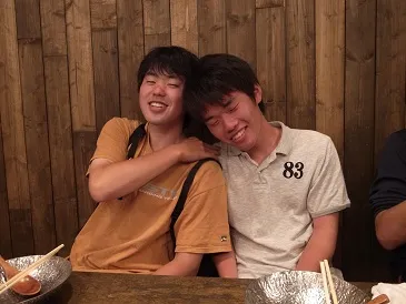 (左)うぇーーーいwww(右)ほっくほくの笑顔ですよ。やっと温泉入れるぜ。