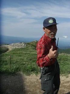山頂に到着〜、なんかこう文章にするとやけに短く感じるけど、実際は6,7時間ほど登ってます。。 ヘルシアウォーター飲んで登ったんだけど、何キロくらいやせたかな〜